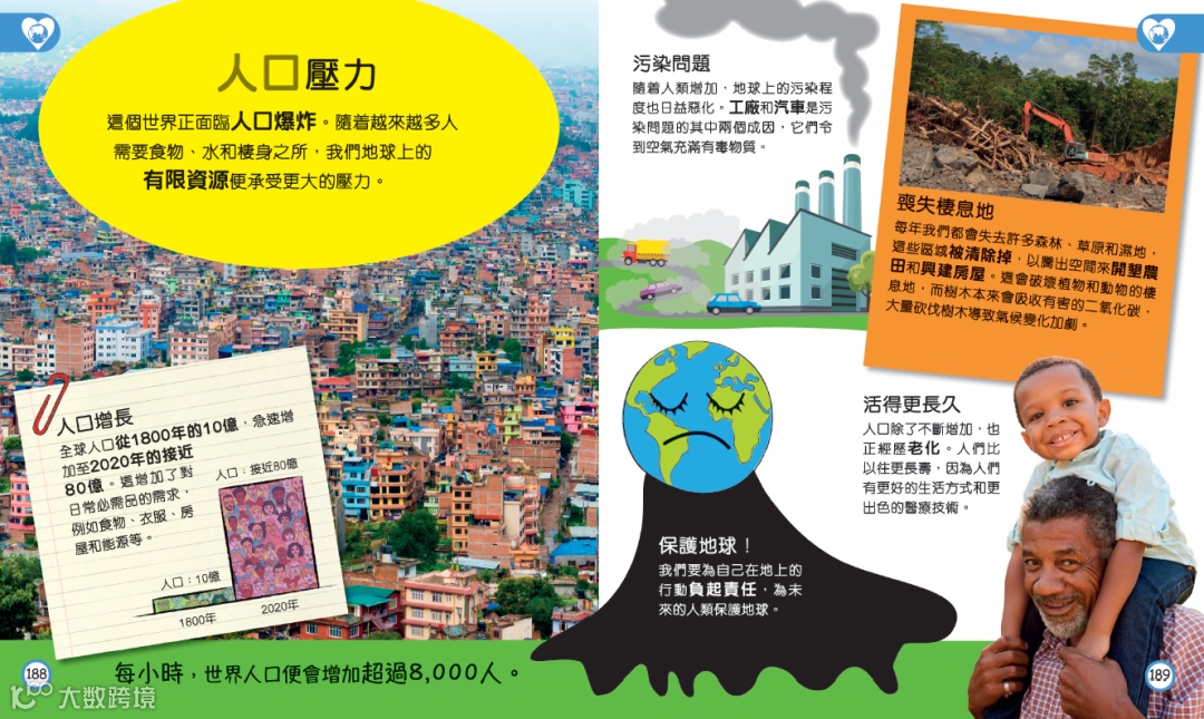當孩子透過不同章節進行地球的科普閱讀,發現地球有趣、可愛又驚人的各種面向之後,最後便來到環保主題。在這部分,孩子會了解到地球資源有限、甚麼是可再生能源、嚴重的塑膠問題,鼓勵孩子培養愛護地球、善用資源的良好習慣。