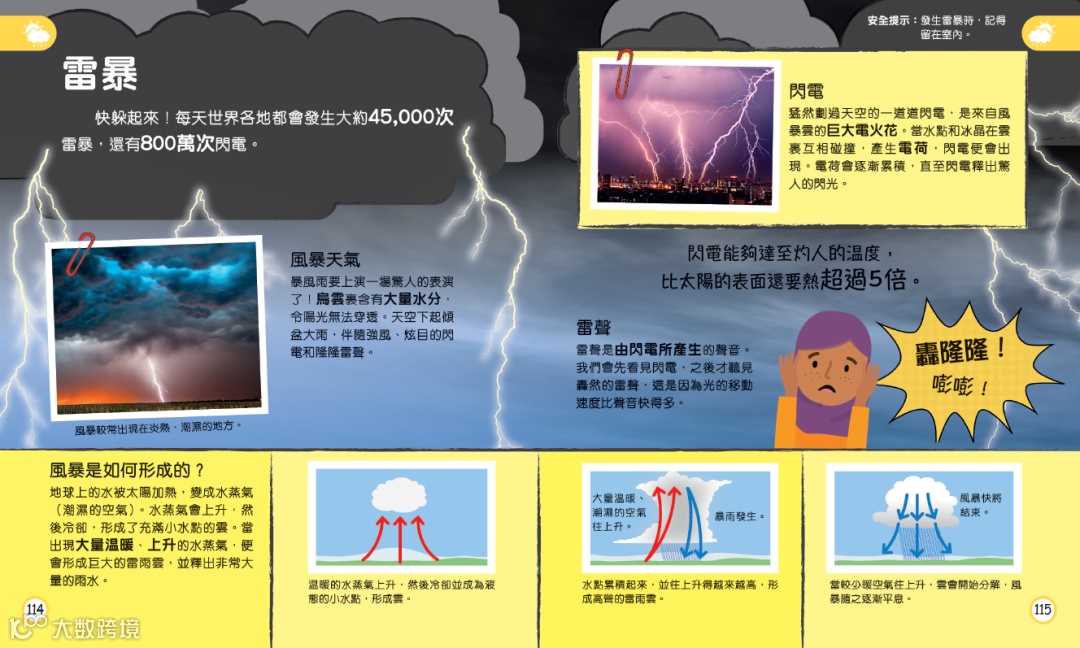 你的孩子是個遇到颱風天或暴雨天,就會望着窗外特別好奇的人嗎?如果是的話,這部分可以解答孩子不少問題,例如地震、颱風、龍捲風、雷暴等自然現象的形成。