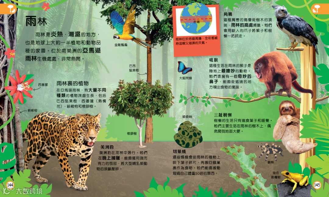 要了解地球,怎能少了與我們共享資源的動物呢?這部分介紹地球的主要棲息地,例如沙漠、濕地、落葉林地、苔原等,以及生活在其中的有趣動物。
