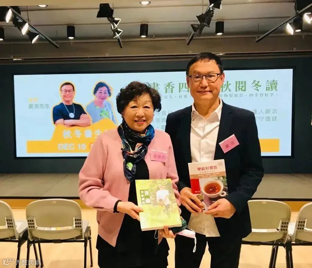 2022年12月10日在集古齋,暢銷書作家、養生達人嚴浩與研究中醫藥食療多年的專家張佩芳對談秋冬養生秘訣。