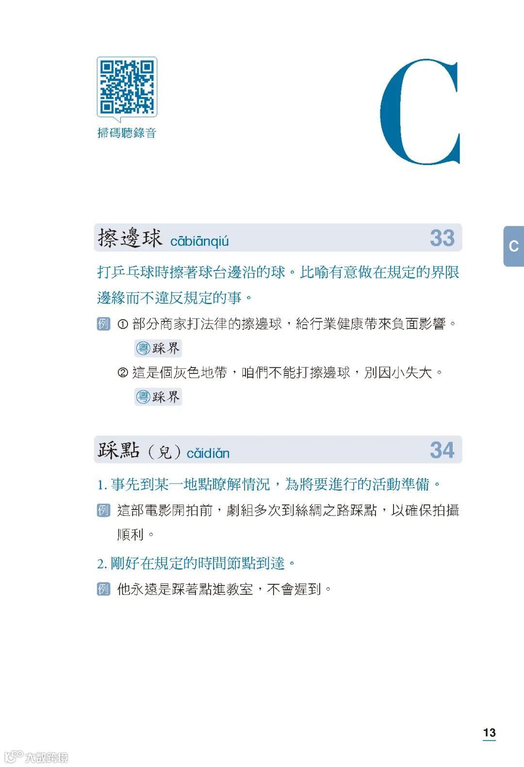 部分詞條提供相對應的粵語常用口語詞,幫助學習者更好地理解詞語含義。