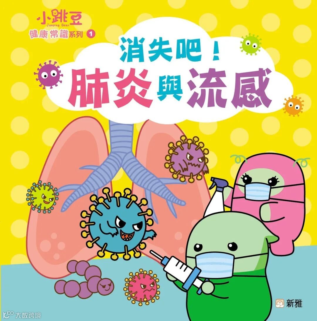 新雅文化出版的《小跳豆健康常識系列》設有不同主題,其中《消失吧!肺炎與流感》由活潑可愛的豆豆好友團,帶領孩子認識關於肺炎與流感的知識、症狀和預防方法,培養良好的生活習慣。本書是兒童學習健康知識的必備圖書,書後附「家長小錦囊」解答常見問題和「豆豆好友團日程表」讓孩子學習規劃時間。