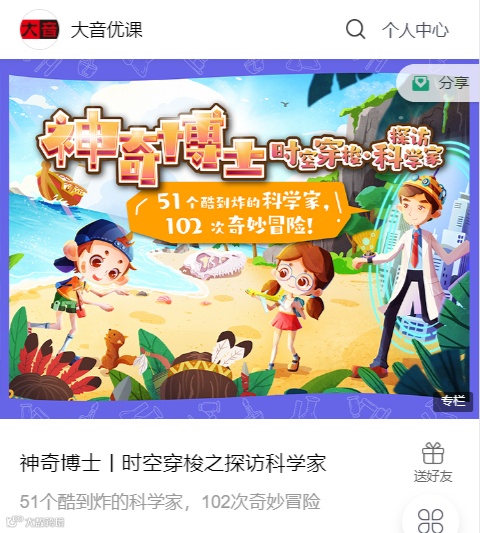 本項目選取了近百年來51位成就卓絕的中外科學家,涉及天文學、物理學、生物學等多個學科領域,從身邊的事物和現象入手,揭開背後的發明過程及隱藏的的科學知識,當中兼具「科學啟蒙+科學教育」兩大功能。