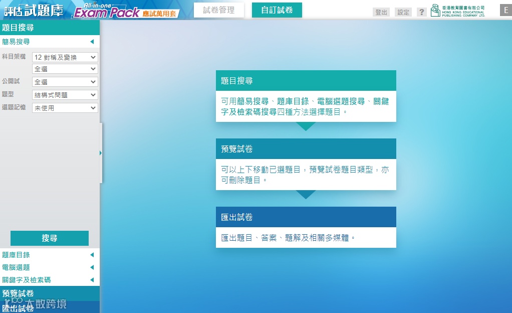 自訂試卷界面