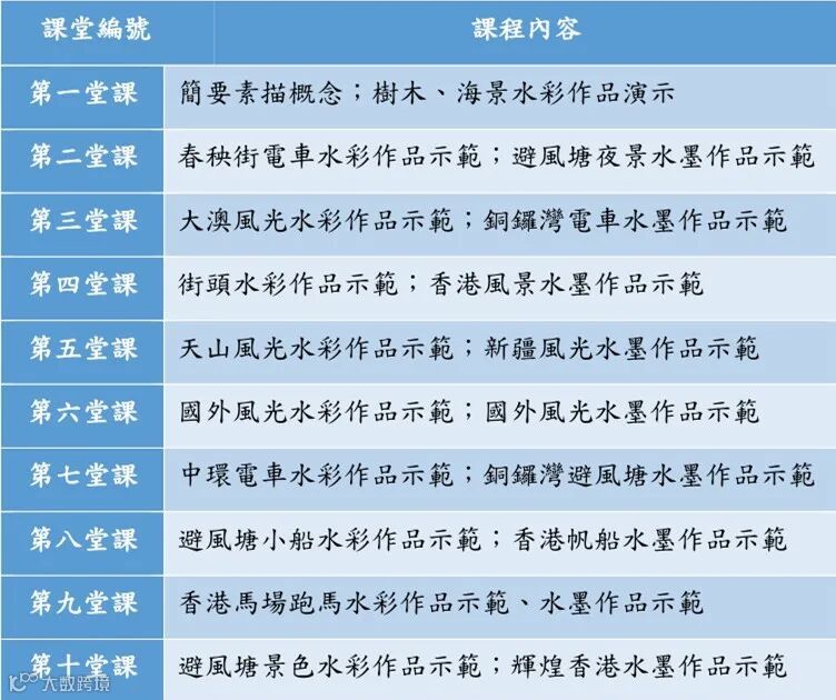 培訓内容:本課程每堂課前面部分素描、水彩作品示範,後面部分水墨作品示範,使學員熟練掌握素描、水彩畫和現代水墨畫技法和特點。香港水彩畫資深畫家沈平老師將會通過水彩濕畫法、乾畫法等技法示範,水彩作品的繪製過程,內容包括靜物(蔬果、花卉)、風景(中國鄉土風景、香港城市風景、國外風景)、人物(肖像和動態),指導學員創作出一幅參展作品,開發學員的繪畫潛能,擴闊藝術視野,提升美術素養。