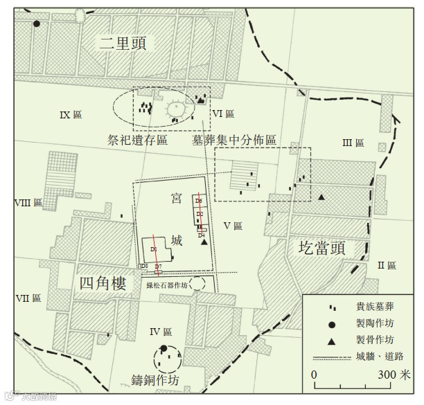👉最早的中軸線布局的宮室建築群(建築上的王權表徵);