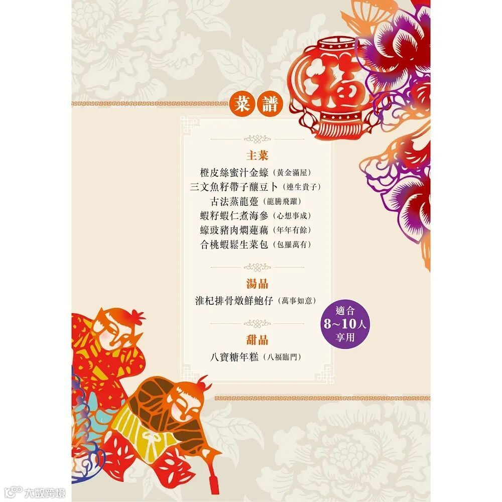 除夕年菜和開年菜講究好寓意,有諧音的菜,能帶來好意頭,廣東人最愛發財好事,髮菜、蠔豉就是必吃的食材,取「發財大好市」的諧音,寓意每一年都發大財。臘味也是常吃的意頭菜,香港人過年要吃有點肥的東西,有「家肥屋潤」的意思。以下是給大家的團年飯的參考。