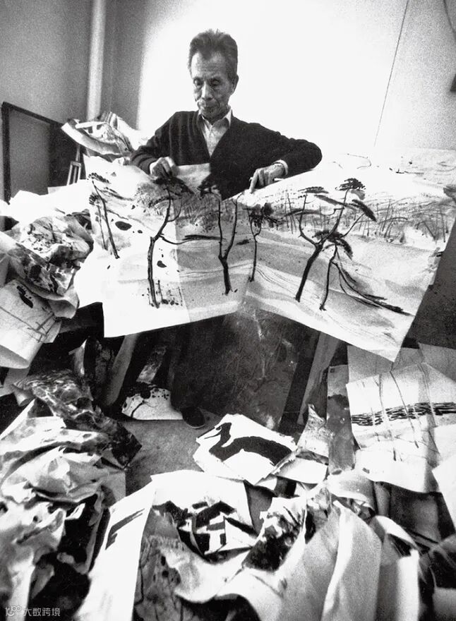 圖 | 1991年秋,吳冠中在家中整理存畫,毀掉二百餘幅不滿意作品。