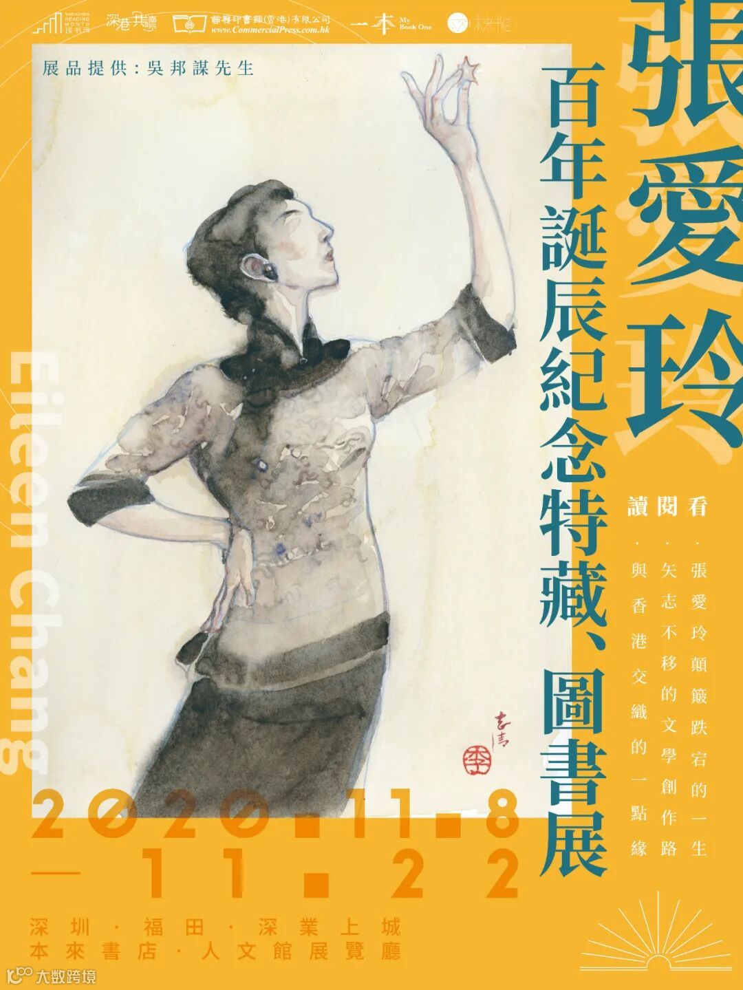 「深港共讀」首屆選出的是華文世界最具代表性的兩位名家——張愛玲與金庸為「共讀人物」。11月8日「深港共讀」活動发布會當天,《尋覓張愛玲》一書作者、收藏家吳邦謀先生將在香港通過視頻,與內地研究張愛玲聞名學界的陳子善先生進行深港連線講座。同時「尋覓張愛玲——張愛玲百年誕辰紀念特藏、圖書展」也將同步開啟,在深業上城的本來書店人文館展出吳邦謀先生專門借出的張愛玲珍貴藏品,讀者可以看到張愛玲早期著作初版、報刊雜志原刊小說、電影宣傳刊物、紀念版圖書,書店同時設有港台版、英文版的張愛玲作品及研究書目展售專區,讓讀者大飽眼福;讀者還可報名參加由知名書評人魏小河領讀的「讀不夠的張愛玲」共讀會。