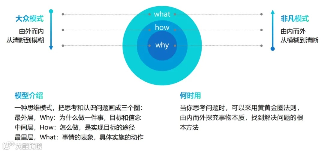 杰出的人总是按照Why(为什么)(价值和意义)-How(怎么做)-What(是什么)的顺序来思考和解决问题。