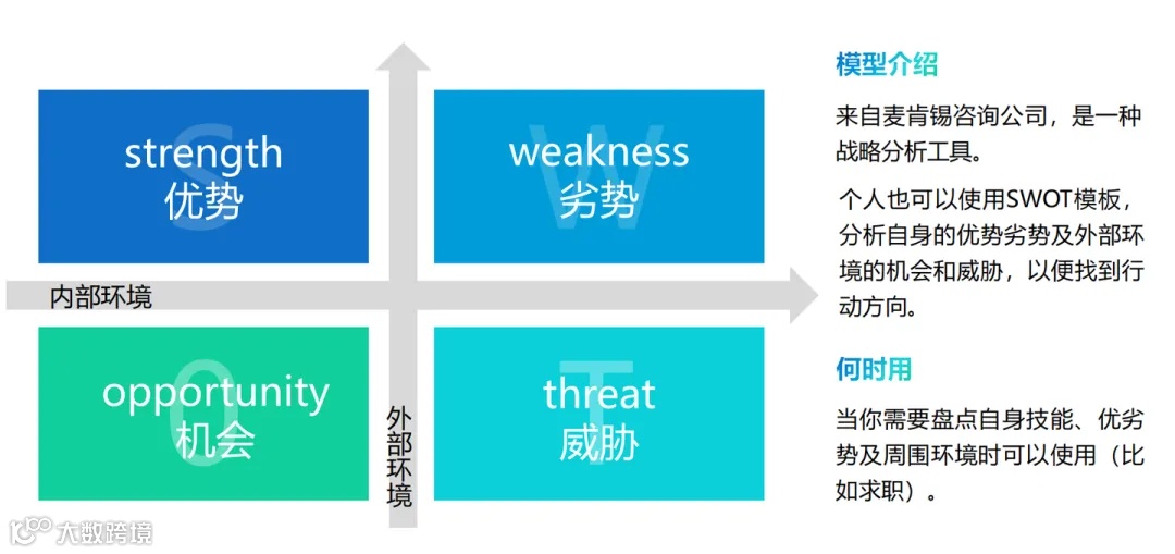 SWOT分析是一种战略规划工具,通过对企业内部的优势(Strengths)、劣势(Weaknesses),以及外部的机会(Opportunities)和威胁(Threats)进行全面分析,帮助企业制定合适的发展战略和对策。