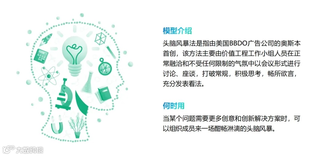 头脑风暴是一种创新思维方法,旨在集思广益,通过自由思考和无限制地提出想法来解决问题或产生新的创意,其核心在于用数量带动质量,激发团队的创新力。