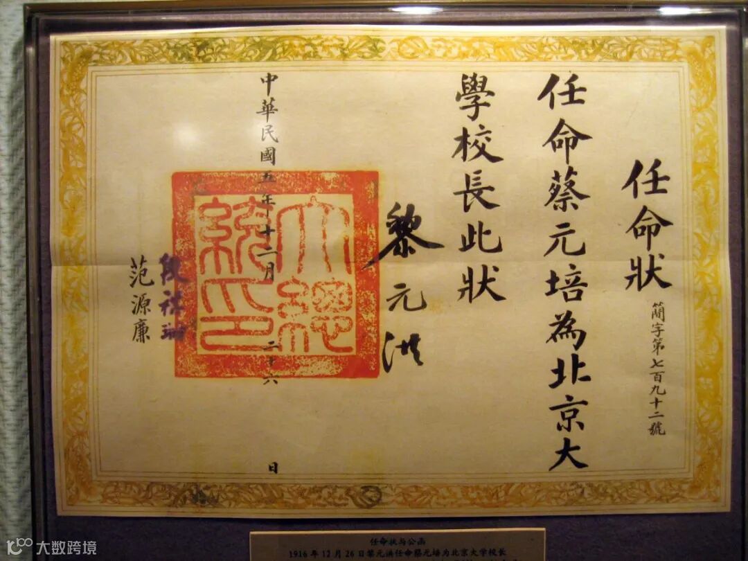 任命蔡元培為北京大學校長的任命狀 | 圖:Wikimedia Commons