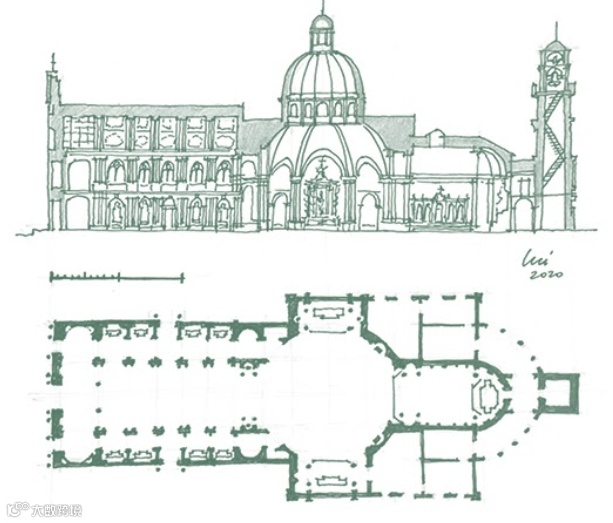 圖|天主之母教堂1904的重建方案(作者按歷史資料繪畫)