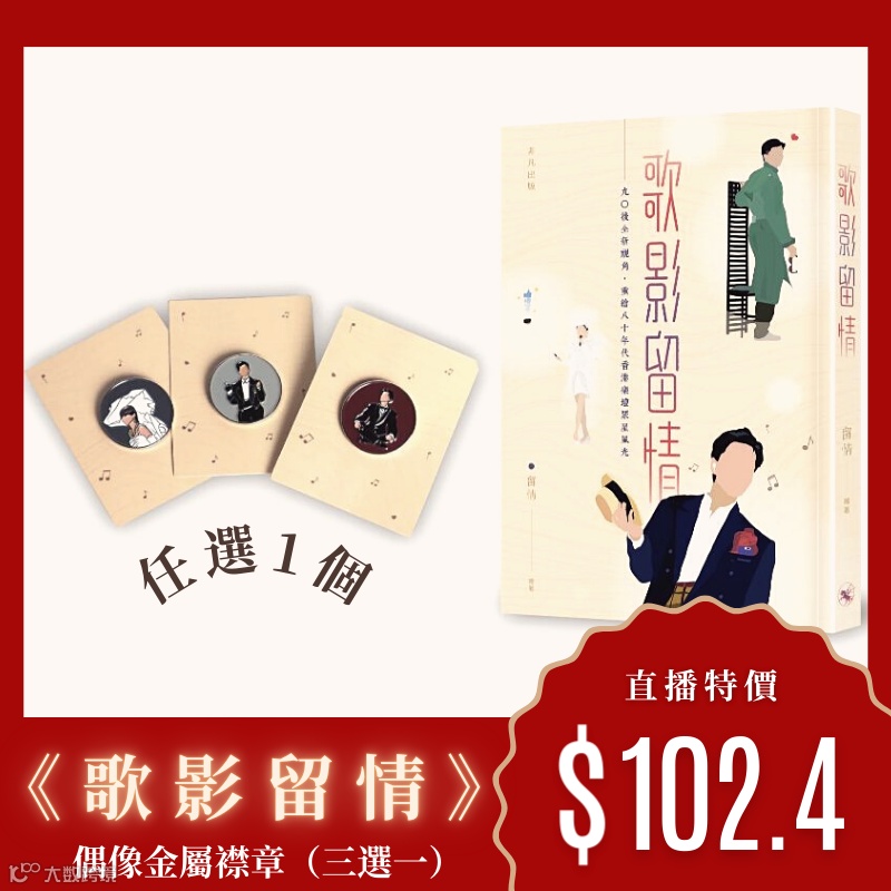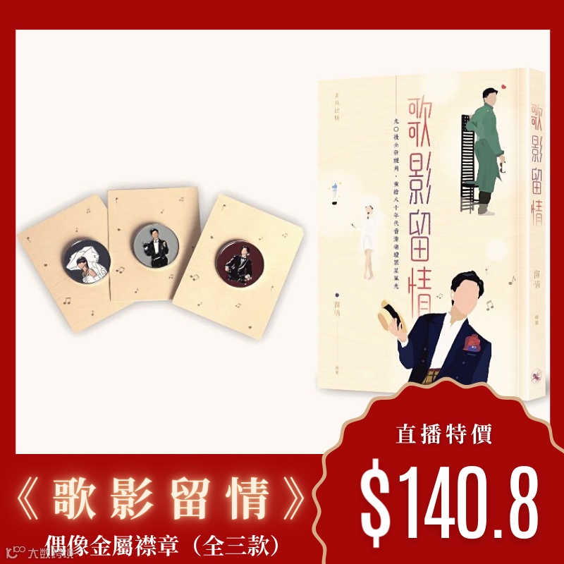直播期間會發佈限時優惠碼,只要登入中華書局網上書店,即可以優惠碼八折購買《歌影留情》,還可加購簽名本及梅艷芳、陳百強、張國榮偶像造型金屬襟章,數量有限,售完即止。