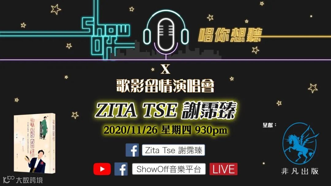 當晚直播,ShowOff音樂平台「唱你想聽」主唱Zita Tse謝霈臻,將會選唱《歌影留情》內提及的八十年代香港樂壇金曲。Zita獨特的中低音聲線,曾被梅艷芳點名說像年輕時的自己,相信聽著她的歌聲,聽眾會時光穿梭回到那段美好的年月,同時也可以連繫不同年代的歌迷。