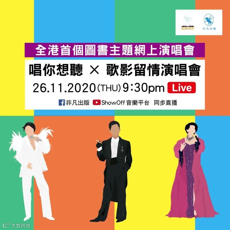 香港中華書局子品牌非凡出版將聯同網上音樂頻道「ShowOff 音樂平台」,於11月26日(星期四)晚上9:30,以新書《歌影留情》為主題,舉行全港首個以圖書為主題的網上演唱會──「唱你想聽×歌影留情演唱會」。