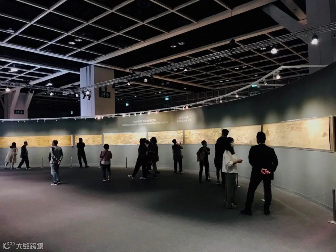 2020年蘇富比秋拍預展現場,眾人觀賞《康熙南巡圖》第六卷。| 圖:香港商務印書館