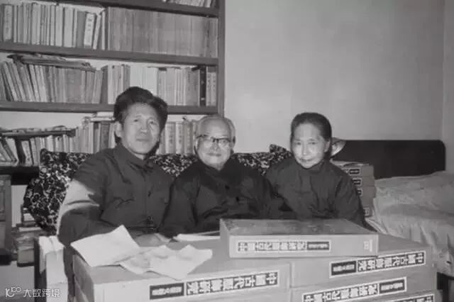 沈從文(中)與香港商務印書館初版的《中國古代服飾研究》。| 圖:網絡