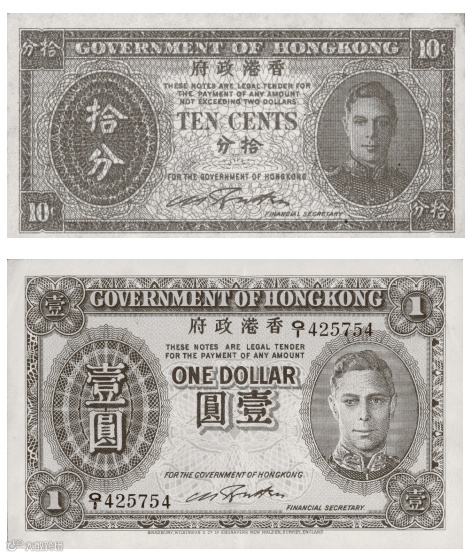 圖 | 1945年和平後,在市面流通的1仙、5仙和1毫及1元鈔票。