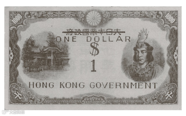 圖 | 用未發行之1円軍票加蓋改作港幣1元的臨時鈔票,曾有少量在市面流通。