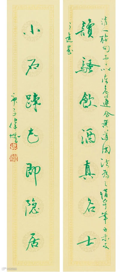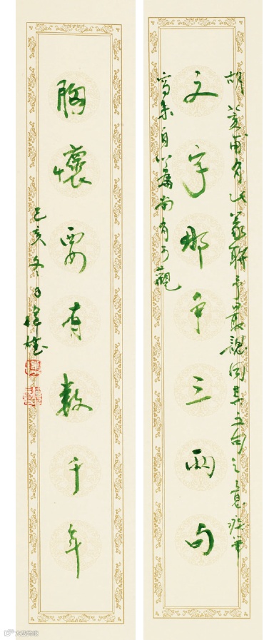 銅鑑古磚多於清末出土,故此類吉語聯,亦其時金石家喜書,語貴祥和也。