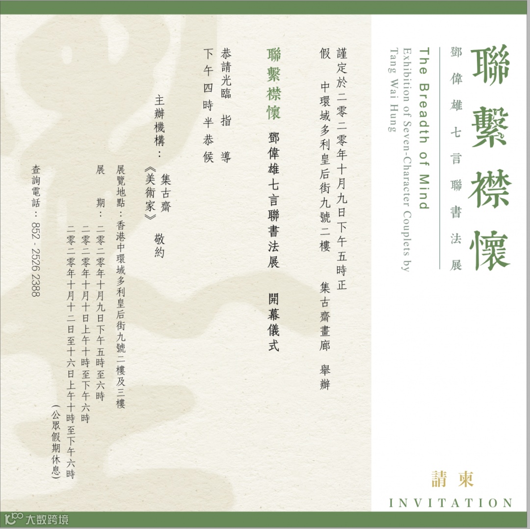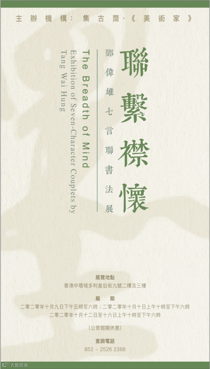 「聯繫襟懷 —— 鄧偉雄七言聯書法展」將於2020年10月9日起在集古齋畫廊展出。