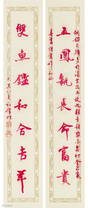 五鳳磚長命富貴,雙魚鑑和合吉祥。