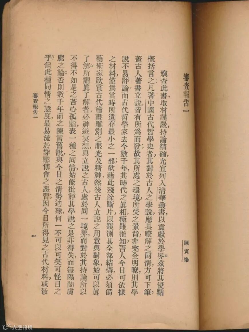 1931年版《中國哲學史》,書中附有陳寅恪的審查報告。 | 圖:香港商務印書館