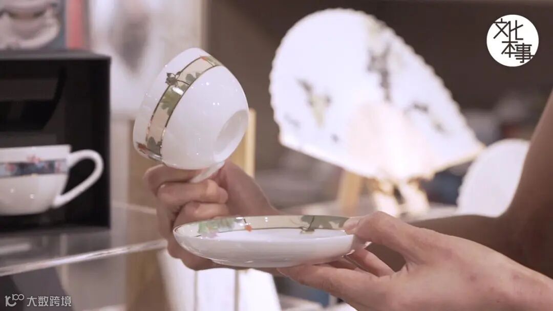 在眾多產品中,利用饒公《百祿是荷》和《吉語荷花分合四屏》圖畫造成的骨瓷杯碟,最令小編印象深刻。這兩套杯碟的樣式仿西式茶具,配上中國畫圖卻毫無違和感。骨瓷杯碟更是由香港碩果僅存的彩瓷廠「粵東瓷廠」監修製造,手工相當精細。據說,當年饒公常造訪粵東瓷廠,即席作畫,這又令此產品增添幾分人文情意。