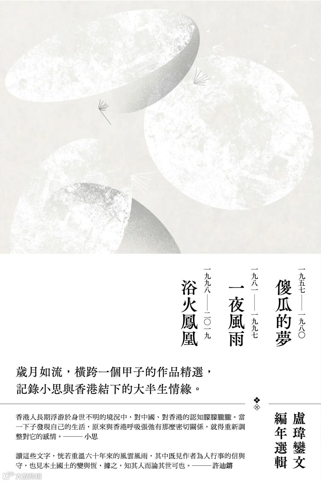 本選按年編錄,可見作者風格的遞嬗和歷年關注所在,讀其文,彷彿與她一起走過60多年香江歲月,於個人則見其教、學、寫的志趣,於社會則見其優、拙、變的崎嶇。這是一部半自傳式的紀錄,也是一部具歷史性的實錄。