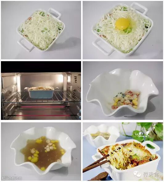 8 在焗碗的中间倒入蛋液。