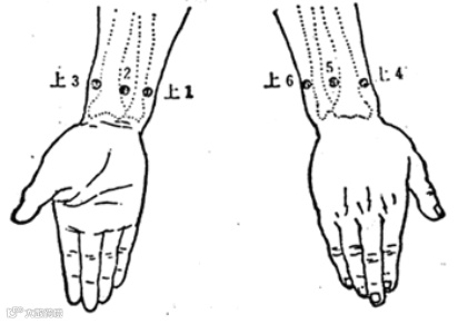 上3区:靠桡动脉外侧,在腕横纹上两横指,桡骨边缘处。位于桡骨与桡动脉之间。