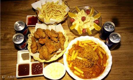 炸鸡、薯条、可乐、卤味统统都堆上!
