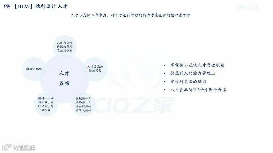 华为通过“战略-流程-人力资源”三大体系支撑战略落地,具体如下: