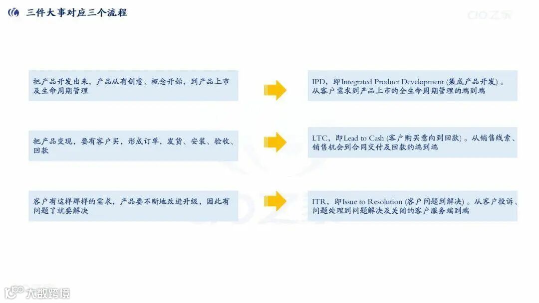 LTC(从线索到回款):销售线索→回款 ITR(从客户问题到解决):客户投诉→关闭 |