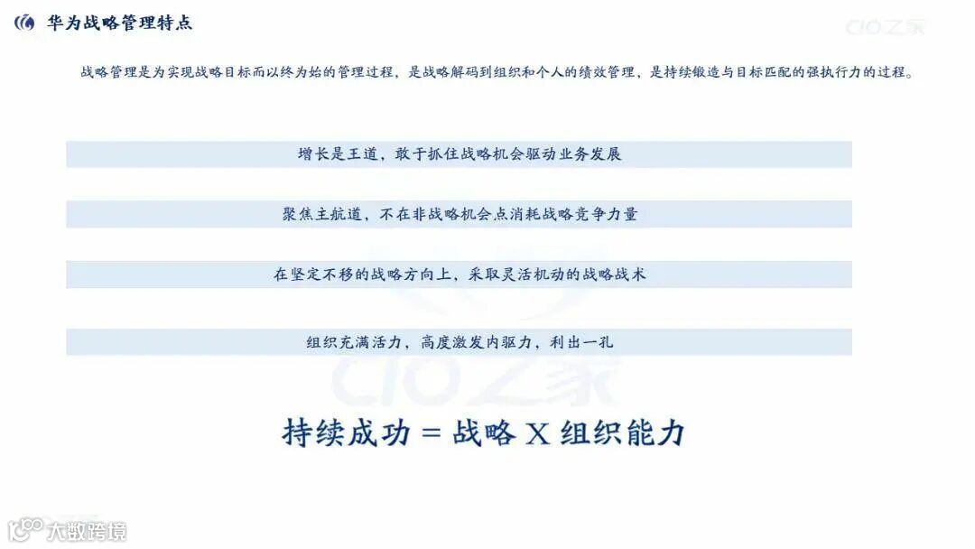 1. 以终为始的闭环管理:战略管理是“战略解码→组织/个人绩效→锻造执行力”的持续过程,核心公式为持续成功=战略×组织能力。