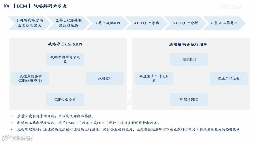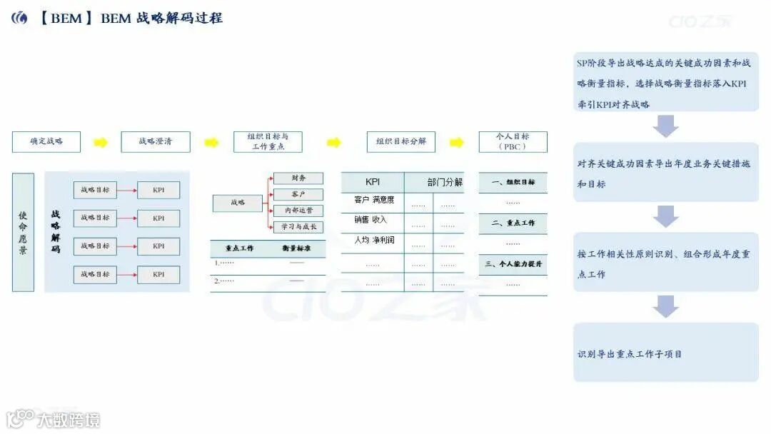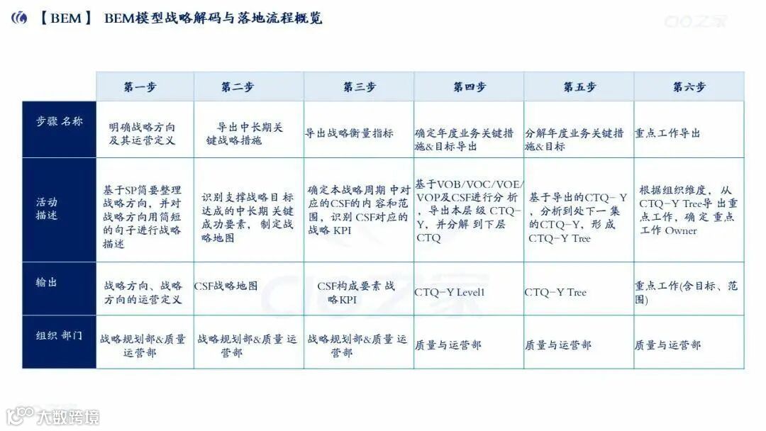 BEM(业务战略力执行力模型):战略解码工具,通过“六步走”实现战略落地: