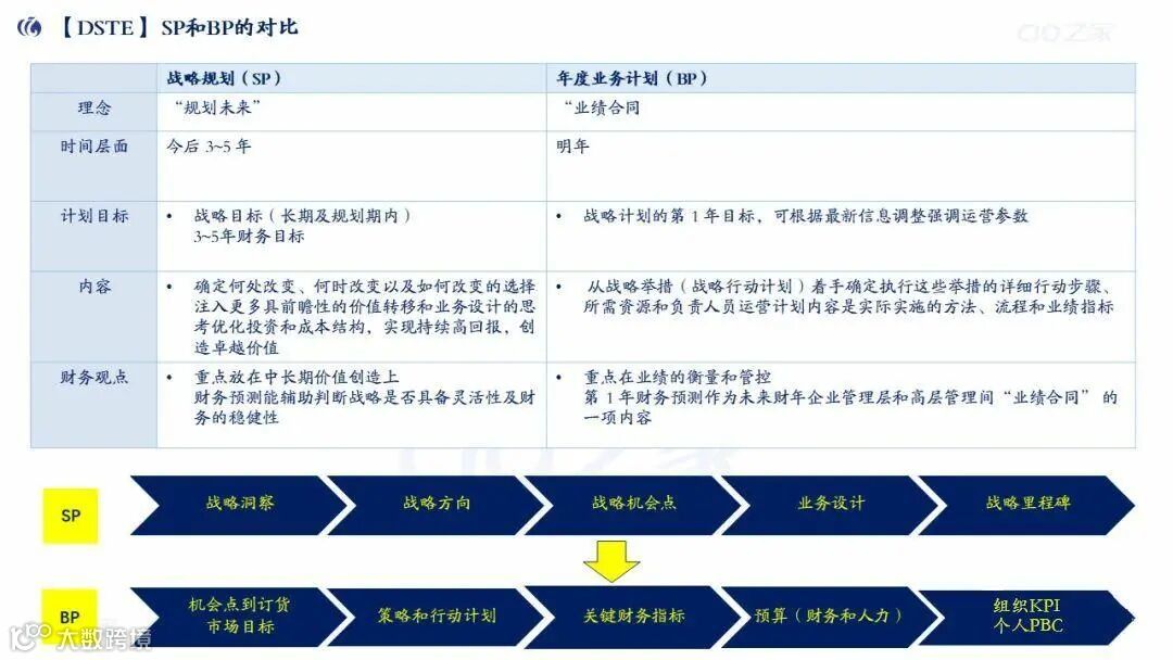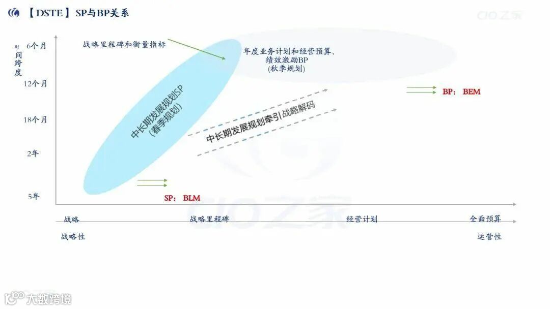 SP与BP关系:SP牵引BP,BP是SP的第1年落地,时间上SP(春季)早于BP(秋季),内容上SP侧重战略方向,BP侧重运营执行。