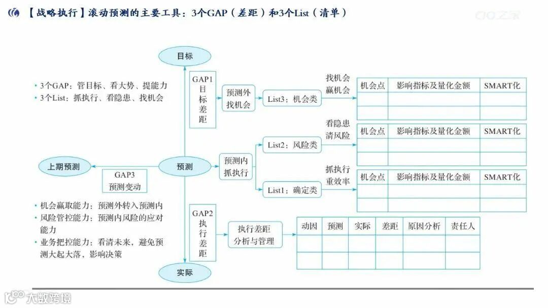 滚动预测:用“3个GAP(目标差距/执行差距/能力差距)+3个List(确定类/风险类/机会类)”管理执行,确保目标达成。