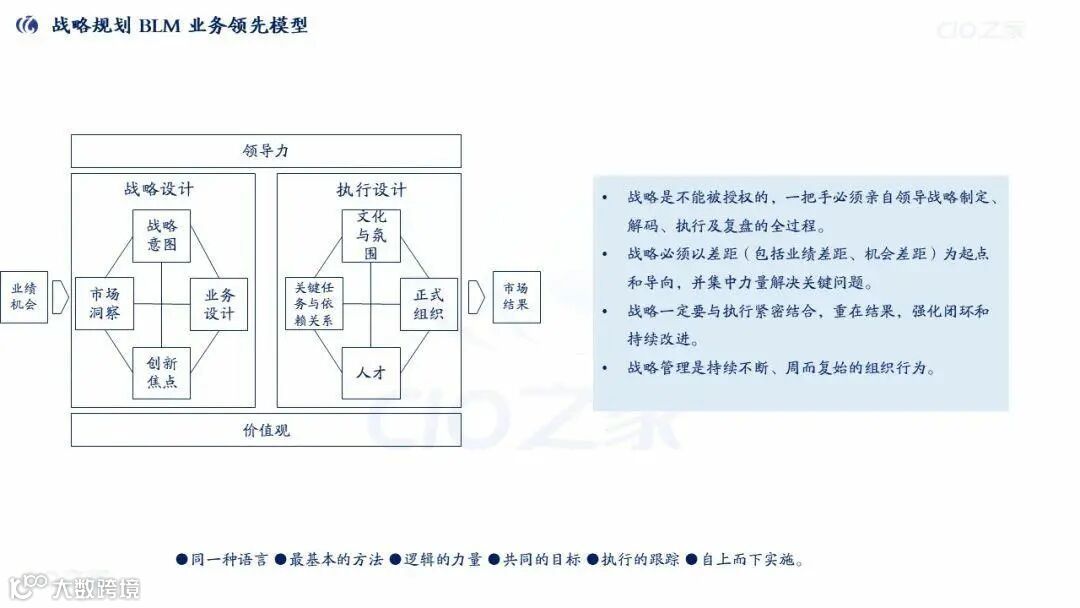 BLM(业务领先模型):战略制定与执行的核心工具,结构如下:
