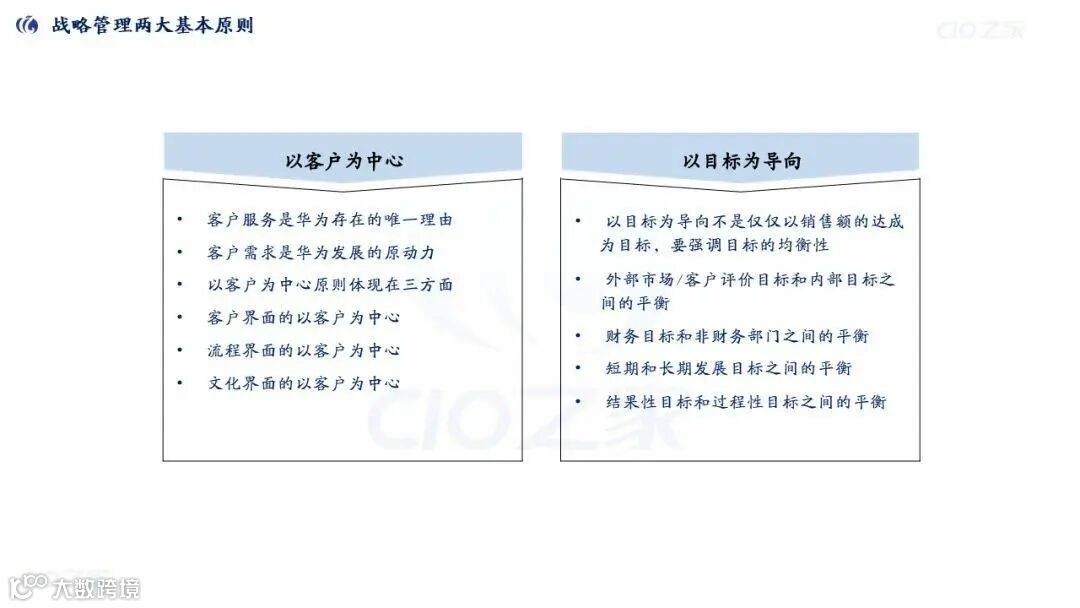 核心围绕“以客户为中心、以奋斗者为本”两大原则,构建了“战略制定-解码-执行-评估”闭环(含BLM(业务领先模型)、BEM(业务战略力执行力模型) 等工具),配套IPD(集成产品研发)、LTC(从线索到回款)、ITR(从客户问题到解决) 关键业务流程。