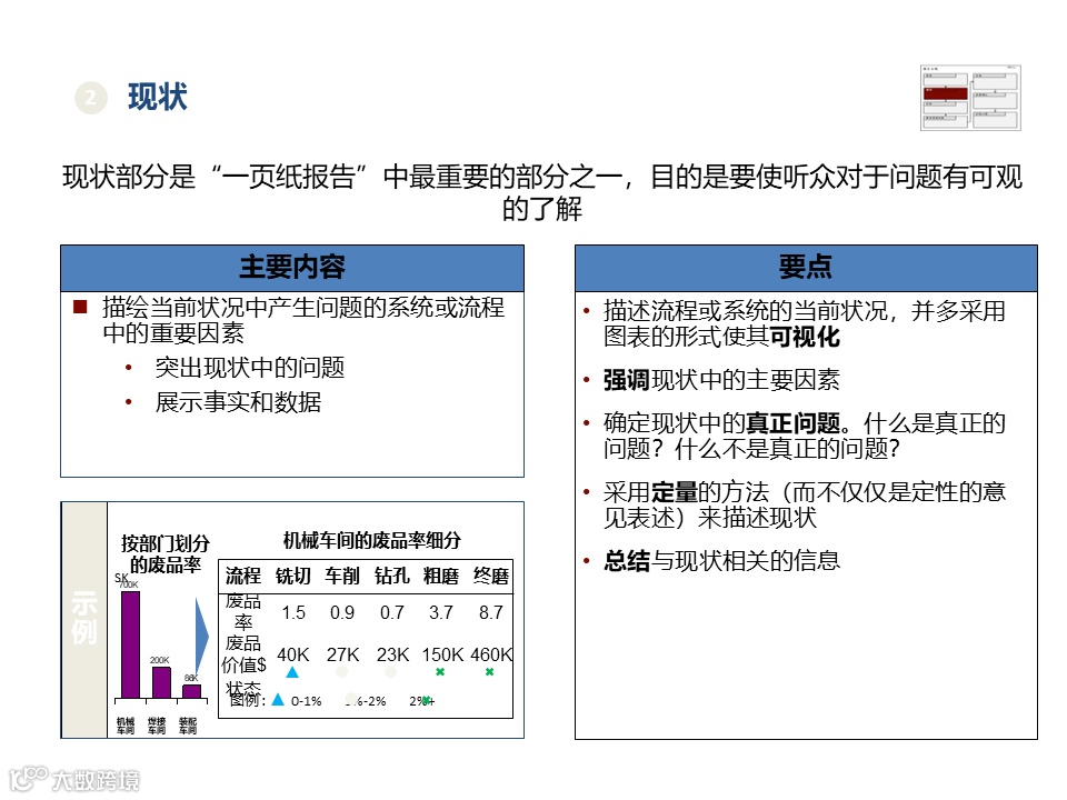 - 用数据/表格描述流程关键要素 - 区分“真问题”与“假问题” |