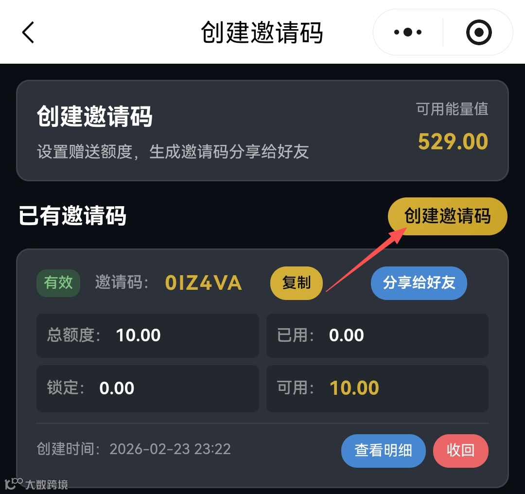 设置完成后,只需点击页面下方的 【确认创建】 按钮。系统将立即生成一个专属邀请码。 -