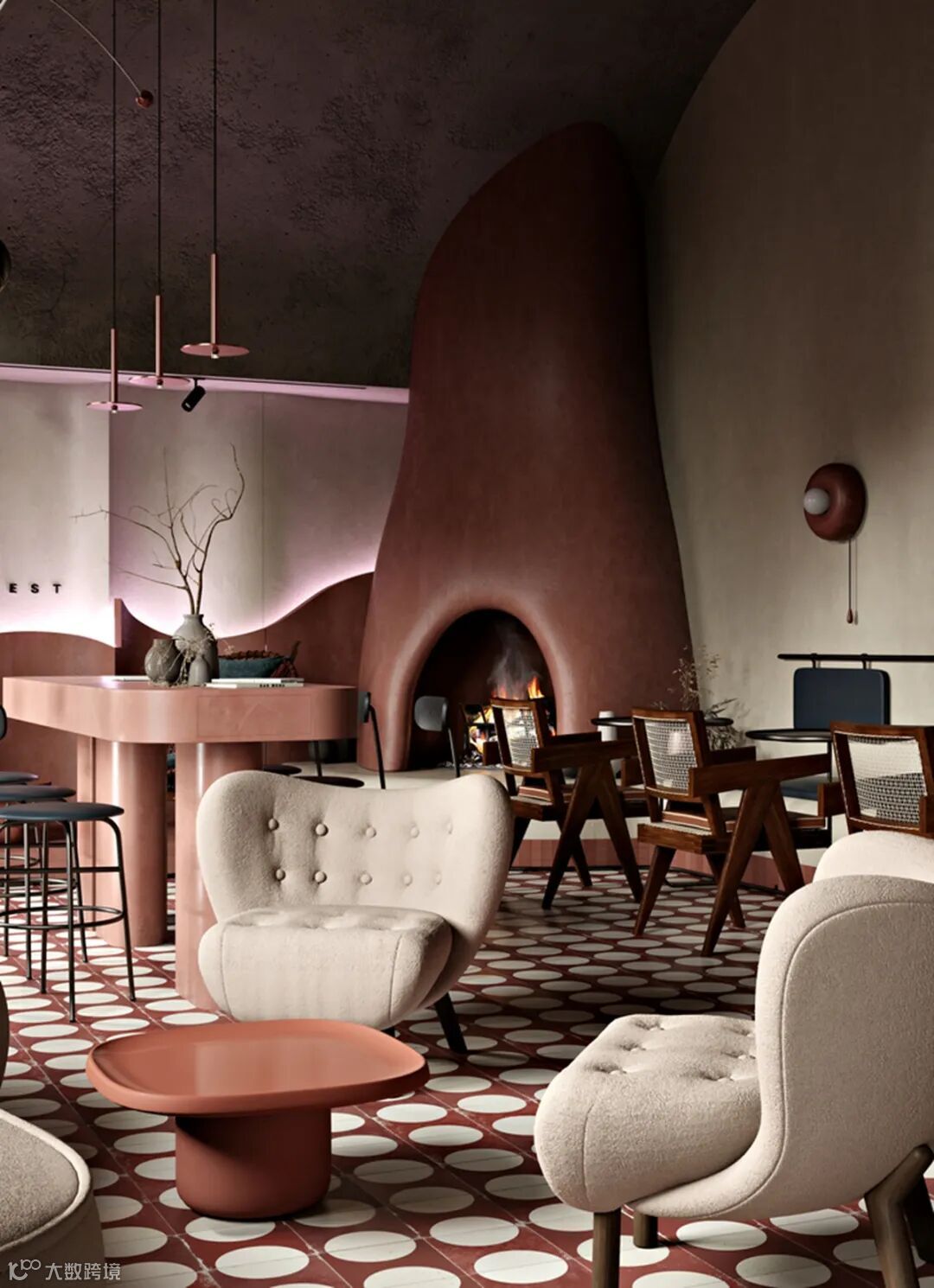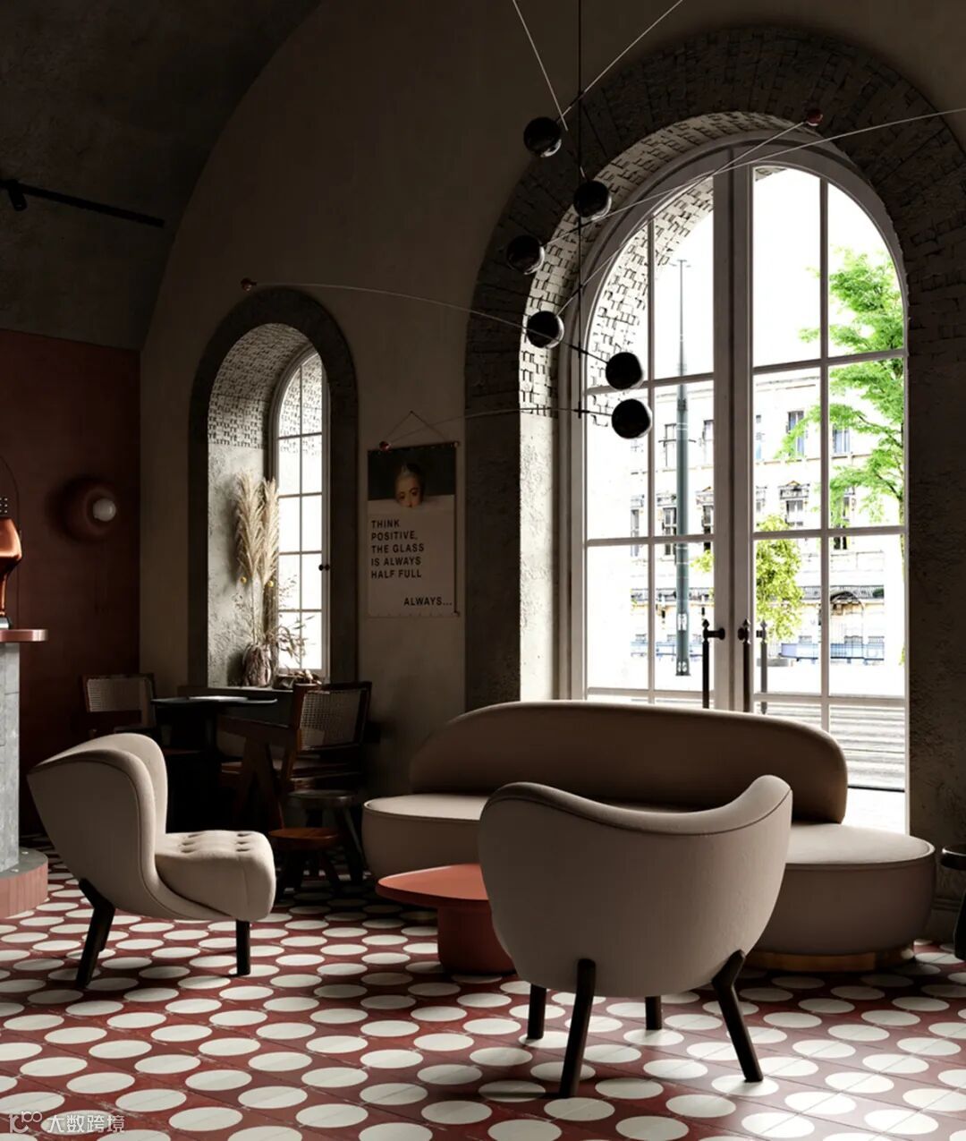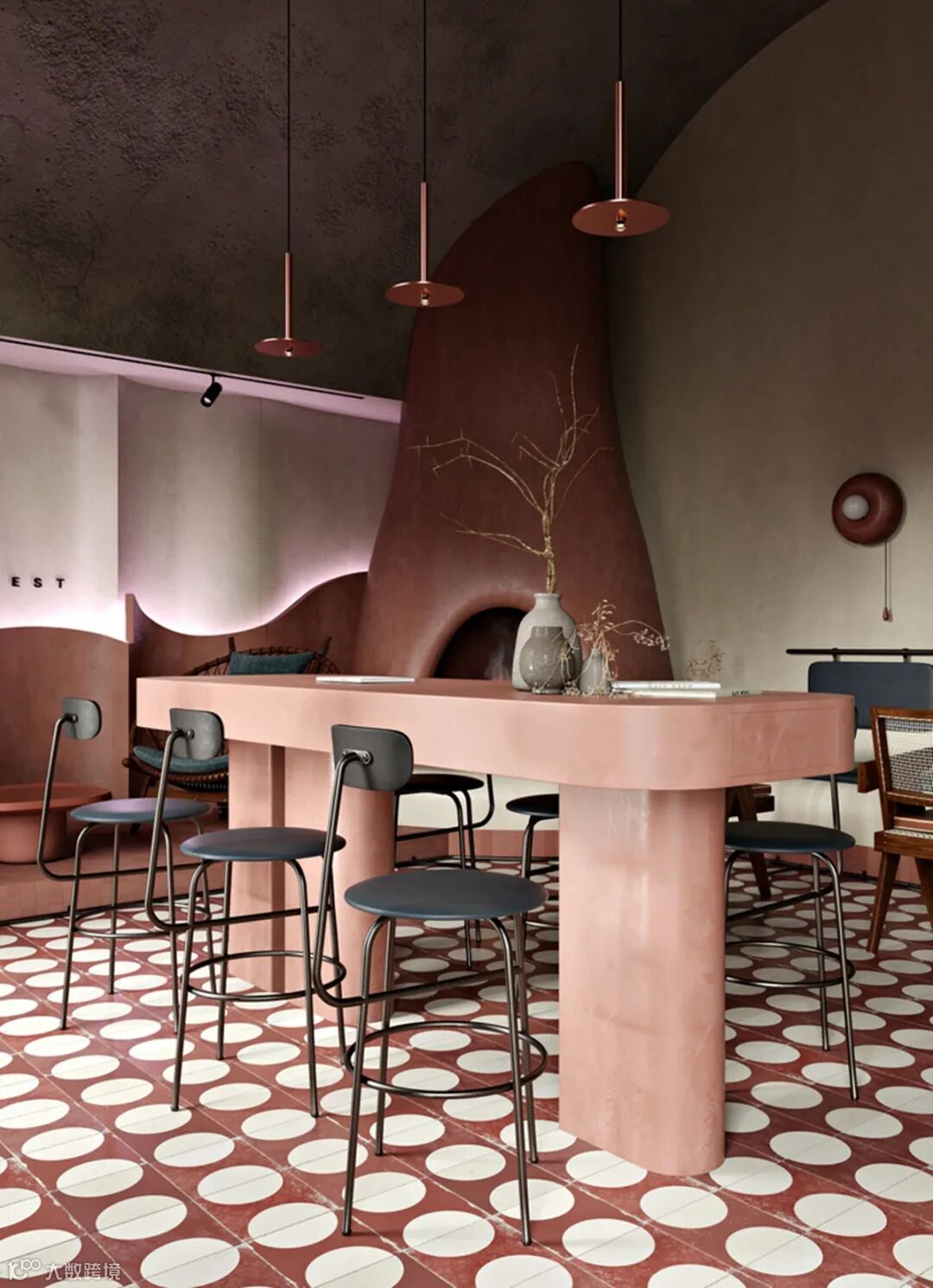 “客户想要一个现代的空间,并搭配皮埃尔·詹内特(Pierre Jeanneret)在上一个项目中留下的老式椅子”、“带有戏剧性、Ins风和亲切的氛围。” “The client wanted an ultra-modern space juxtaposed with a vintage chairs Pierre Jeanneret, which he left from the last project”. “With dramatic feelings, Instagram views and a friendly atmosphere.”