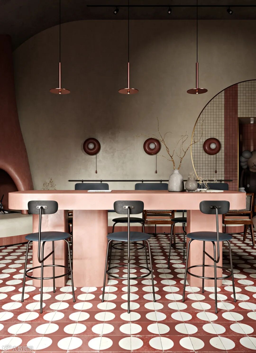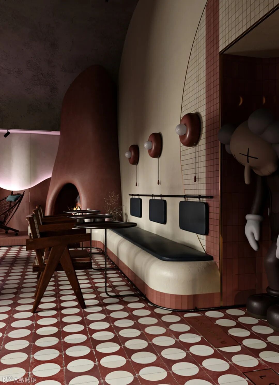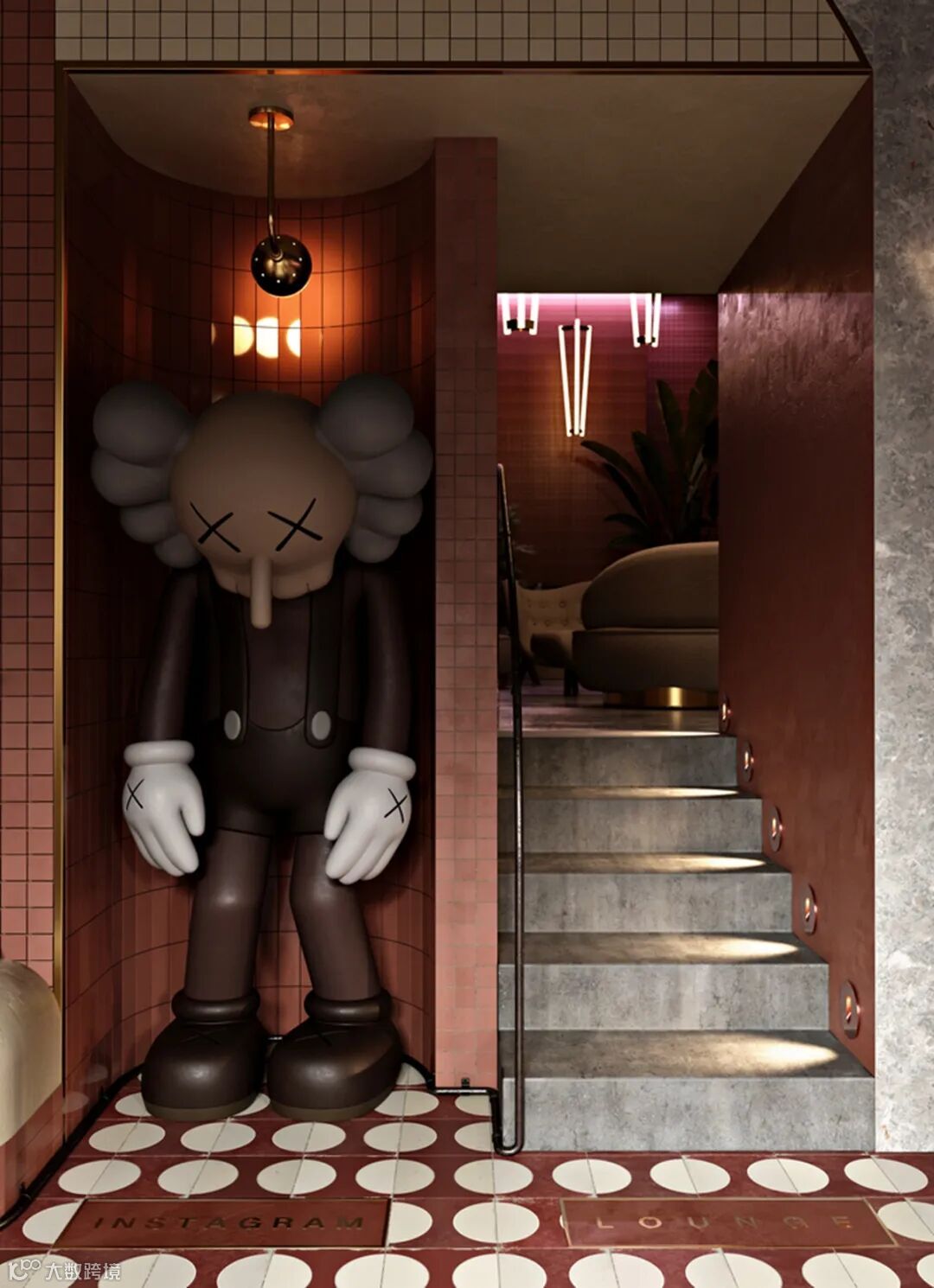 这个空间里的惊喜是巨大的KAWS“小谎言”雕塑,这是一个拍照发Instagram的绝佳地点。沙发区的模块化雕塑是当地工匠受亚历山大·考尔德的启发手工制作的。 The surprise in this space is the huge sculpture of KAWS “Small Lie”, which is a great find for Instagram photos. Modular sculpture in the sofa area is handmade by local craftsmen inspired by Alexander Calder.