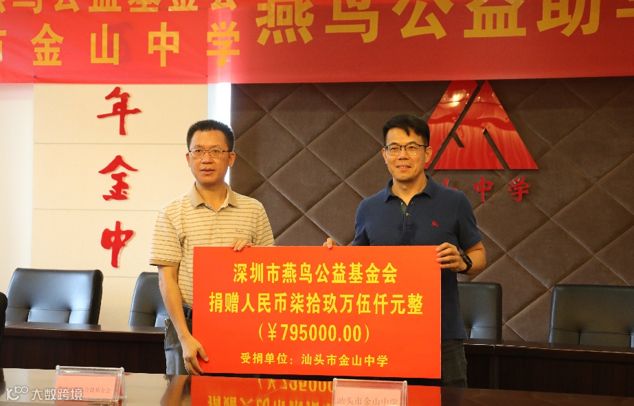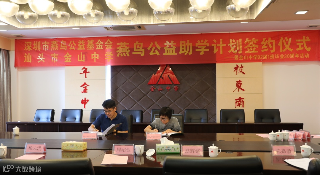 7月2日,深圳市燕鸟公益基金会与汕头市金山中学“燕鸟公益助学计划”签约仪式在金山中学举行。金山中学李丽丽校长、魏崇兴书记、吴进南副校长、92届1班陈远贵老师、周强校友等校方代表和燕鸟公益基金会周昭钦副理事长及工作人员出席了签约仪式。