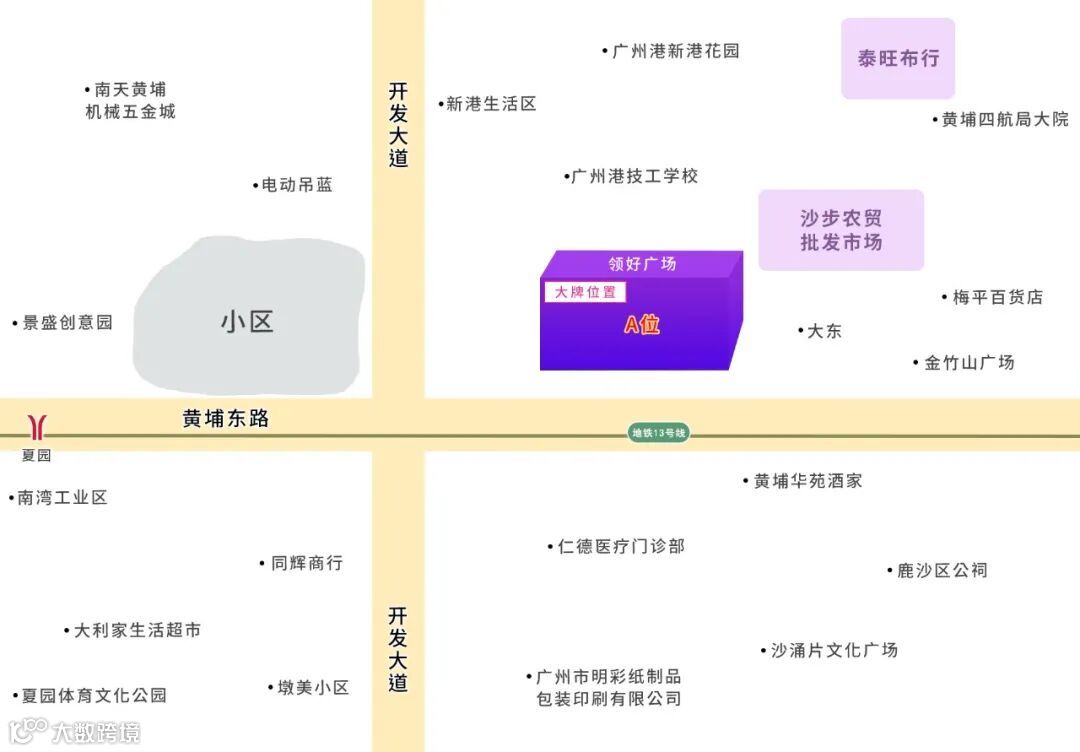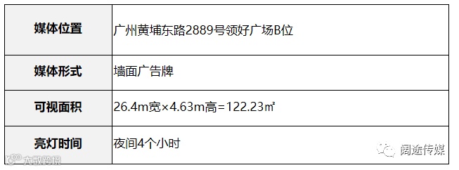 该广告牌位于领好广场位于广州市黄埔区黄埔东路2889号,营业面积约30000㎡,