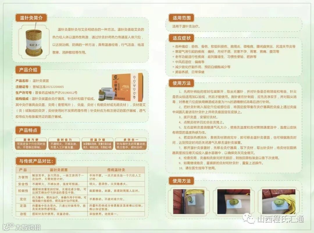 是一家以中医医疗器械产品的研发、生产、销售为一体的高新技术企业。公司以提供全方位技术支持和一站式采购解决方案,助力医疗机构提升服务品质做贡献。提倡“人为本,匠心造,艾久存”的企业精神,开拓进取,务实创新。