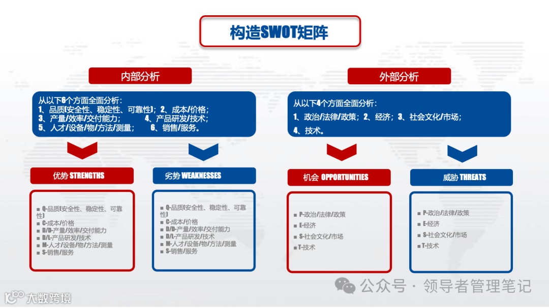 文档将分析流程拆解为“环境分析→构造矩阵→制定计划”,每步均明确“操作内容、工具、输出物”,避免“步骤模糊导致无法落地”: